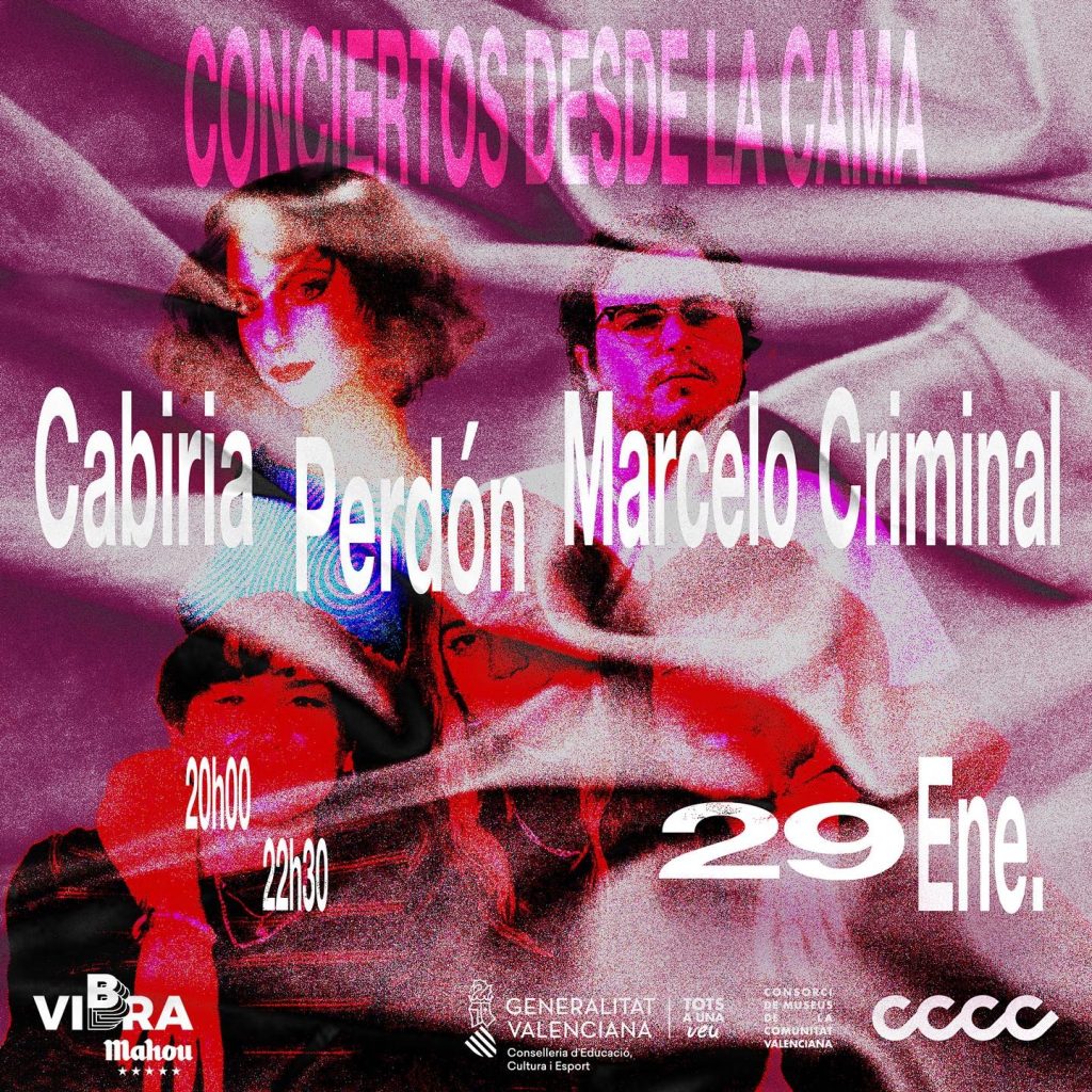 El nuevo pop vuelve a inundar de alegría y juventud el claustro gótico del Centre del Carme Cultura Contemporània (CCCC) con las actuaciones, nada más y nada menos, que de Cabiria, reina del pop patrio, Marcelo Criminal y Perdón, considerado por la casa como uno de los mejores grupos de bedroom pop de España. Durante estos últimos tres años, @cero.en.conducta ha promocionado el bedroom pop desde su inicio y siguiendo esa perspectiva, traen a estos tres referentes del movimiento a la última edición de la temporada de conciertos desde la cama, el proyecto impulsado por el Centre del Carme Cultura Contemporània (CCCC), a través del Consorci de Museus y @cero.en.conducta con la colaboración de Vibra Mahou, la plataforma de música de Mahou Cinco Estrellas, que sigue apoyando iniciativas que facilitan encuentros de calidad en torno a la mejor música en directo y reforzando su compromiso con el talento y los artistas emergentes.