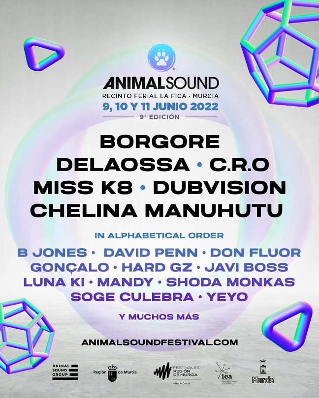 El israelí Borgore aterrizará en Animal Sound con su gorestep melódico, pegadizo y siempre brutal, de tremendo efecto en la pista de baile. También están en este primer avance de cartel La “diosa del hardcore” Miss K8, con sus ritmos dinámicos, magnéticos y salvajes. El hip-hop referencial y popular del malagueño Delaossa. El trap versátil, desafiante y callejero del argentino C.R.O. La electrónica groovera, enérgica y vitalista de la holandesa, afincada en Ibiza, Chelina Manuhutu. El electro-house-edmero de los neerlandeses DubVision. Desde Ibiza a Murcia, llegará B Jones con su sesión techno y house de muchos quilates, la primera artista española en subirse al escenario principal de Tomorrowland. El house-máster nacional por antonomasia, David Penn con su arsenal de destacados himnos para la pista de baile, es otro de los grandes artistas nacionales de este Animal Sound 2022.