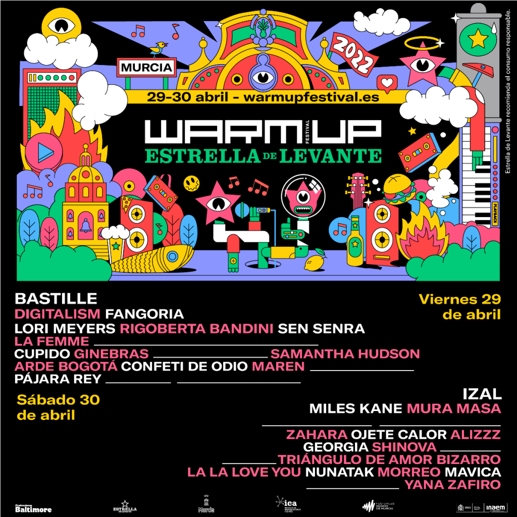 WARM UP Estrella de Levante volverá a abrir sus puertas en menos de dos meses en una edición muy especial plagada de grandes nombres internacionales y nacionales como Bastille, Izal, Digitalism, Fangoria, Lori Meyers, Miles Kane y Mura Masa entre otros. Hoy, a falta de los últimos nombres confirmados y con más de 28 nombres en el cartel, la organización presenta la esperadísima distribución por días.