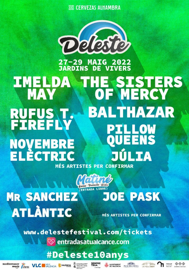 La próxima edición del festival Deleste contará con una mítica banda muy recordada por el público valenciano: The Sisters of Mercy. Los británicos se formaron en 1980 y rápidamente se convirtieron en punta de lanza del movimiento gótico que tanta repercusión tuvo en la Comunitat Valenciana. Actualmente, el cantante Andrew Eldritch y sus compañeros preparan una gira por el continente europeo para celebrar 40 años de éxitos. Asimismo, la programación incluirá al grupo irlandés Pillow Queens y a la banda valenciana Novembre Elèctric. Por otro lado, el festival también ofrecerá conciertos gratuitos en la llamada Matiné Deleste. Las actuaciones estarán protagonizadas por Atlàntic y Joe Pask, entre otros. Cabe recordar que el cartel del evento ya incluía a artistas como Imelda May, Balthazar, Rufus T. Firefly, Júlia y Mr Sanchez.