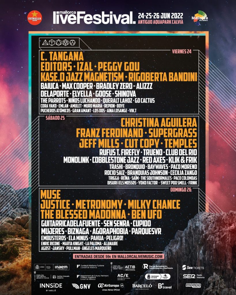 Cut Copy, Editors, Milky Chance, Supergrass y Temples encabezan las últimas confirmaciones con las que Mallorca Live Festival ha cerrado el cartel más internacional de sus cinco años de vida. A estas bandas internacionales se han sumado los últimos nombres de la propuesta electrónica del festival y cerca de 20 artistas nacionales que pasarán por el Antiguo Aquapark de Calvià los días 24, 25 y 26 de junio de 2022.