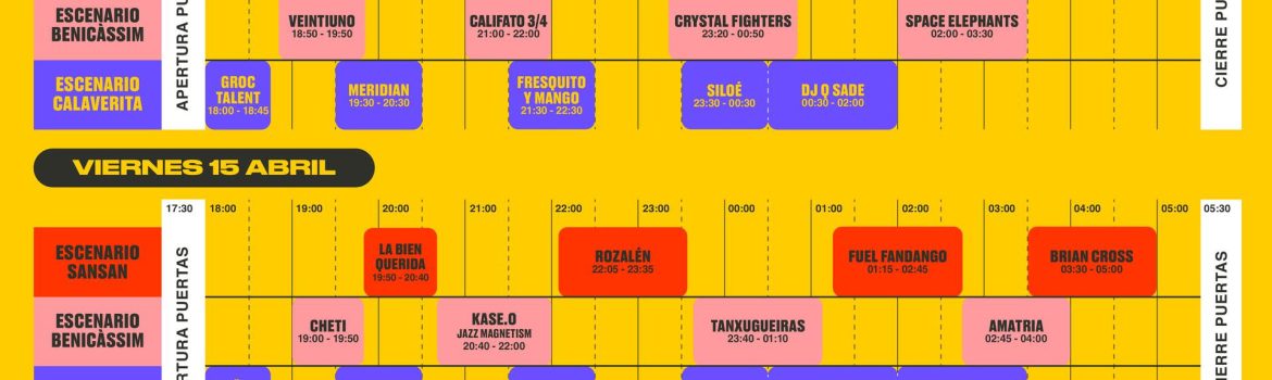 El SanSan Festival regresará en Semana Santa del 14 al 16 de abril con este heterogéneo cartel, que alterna nombres consagrados con nuevas promesas tanto nacionales como internacionales de distintos estilos, el evento abrirá la temporada de grandes festivales de verano ofreciendo una alternativa a la Semana Santa tradicional con sol, playa, gastronomía y buena música.