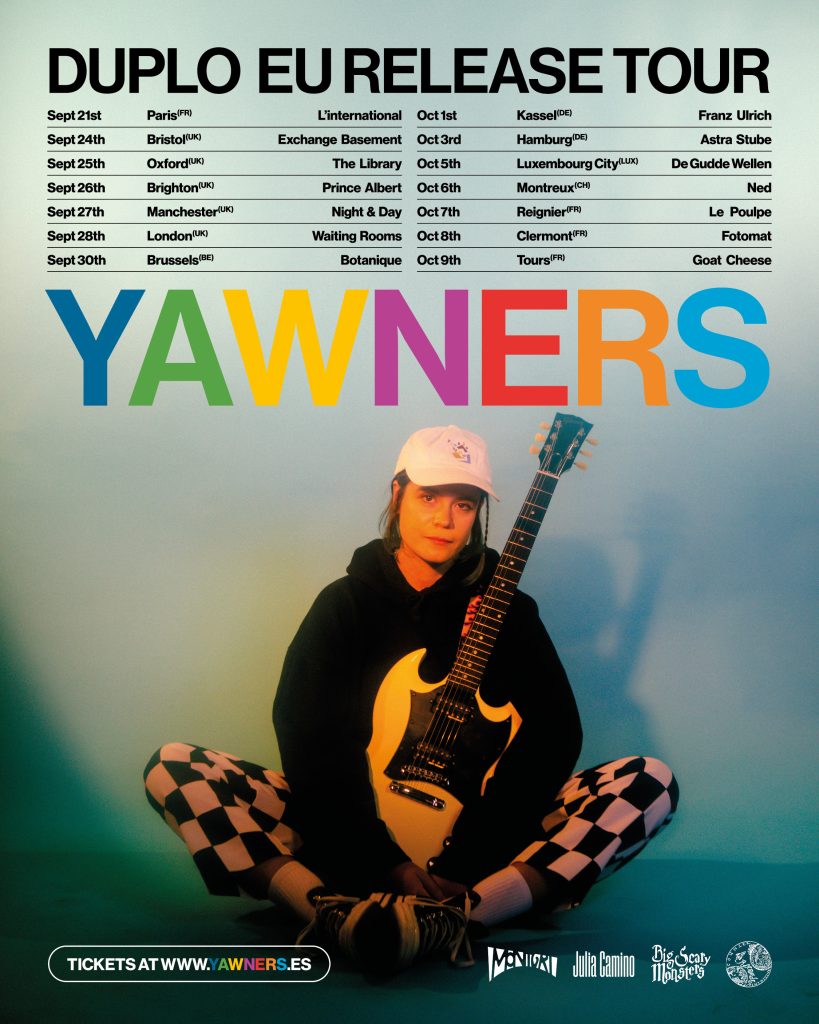 Yawners también acaba de anunciar una extensa gira de presentación de Duplo por toda Europa para finales de septiembre, con conciertos en ciudades como París, Londres, Manchester, Bruselas o Luxemburgo, entre muchas otras.