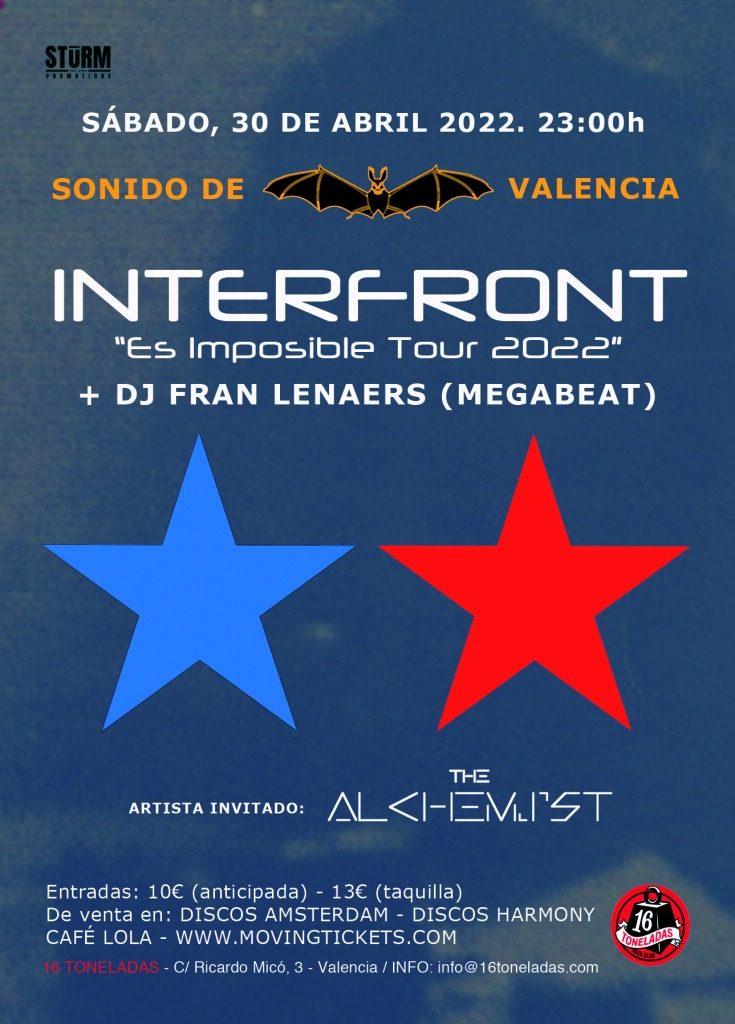 Esperada actuación el próximo sábado 30 de abril de Interfront “Es Imposible Tour 2022” y The Alchemist con DJ Fran Lenaers (Megabeat) en la sala 16 Toneladas de València.