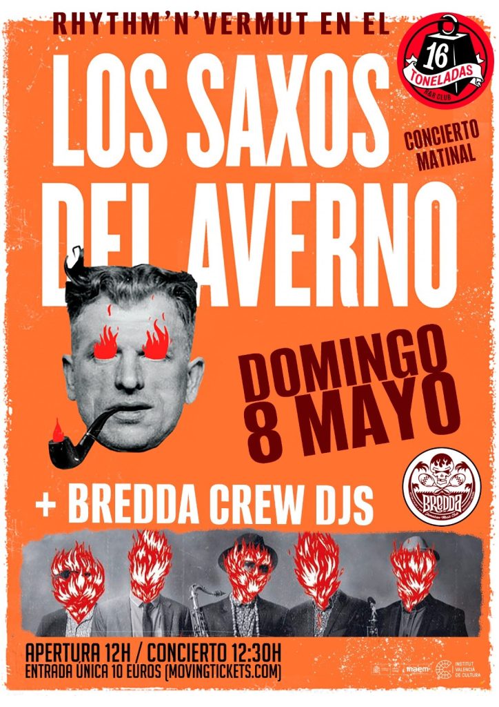 A partir de las 12 del mediodía y, para todos los públicos, Los Saxos del Averno darán buena cuenta del incendiario directo que los caracteriza. No estarán solos y es que, para echar más leña al fuego, contarán con una compañía inmejorable: Bredda Crew DJ’s, que amenizaran una sesión matinal de esas que te arreglan el día (y hasta la semana siguiente).