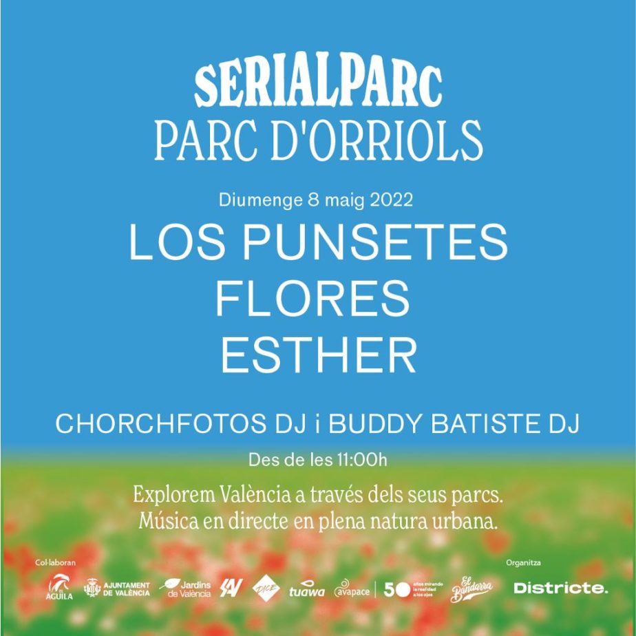 Junto a Los Punsetes, el cartel de Serialparc Parc d’Orriols estará completado por Flores, el proyecto personal del músico valenciano Quique Flores: pop luminoso y mediterráneo hecho desde el corazón; y una de las voces propias más emocionantes del panorama emergente valenciano, Esther.