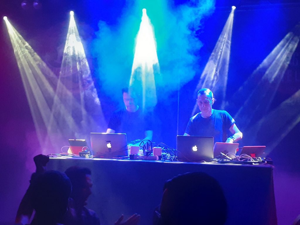 La gente ya estaba animada y aprovechó el interludio, amenizado con más electrónica, para prepararse ante la inminente presencia de un ilustre. El preludio de la suite no 1 de Bach en Sol mayor, sonó para reseñar el nivel de gala de la ocasión. Aparecen Julio «Nexus» y Albert Pavía, y accionan los motores para encender esa máquina del tiempo de la que he hablado al comienzo, que lejos de ser unidireccional, acabó sirviendo tanto para llevarnos a las personas que allí fueron congregadas por ellos, a una época pasada, como a ellos les sirve para traer al presente su música.