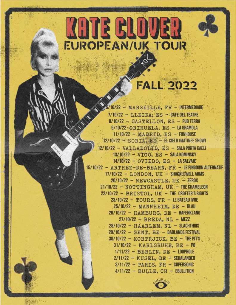 La artista californiana Kate Clover acaba de anunciar su gira al completo por Europa y Reino Unido. Entre sus paradas, Clover hará un alto en España, donde podremos disfrutarla en directo en Lleida, Castellón, Madrid, Soria, Valladolid, Vigo y Oviedo. Presentará en directo su álbum debut ‘Bleed Your Heart Out’ con el que dará cuenta de directos bien servidos de punk y garaje en unas fechas exclusivas en nuestro país.