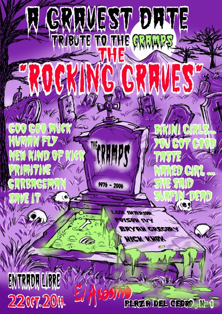 Para disfrute de todos los seguidores del punk y psychobilly creado por Lux Interior y Poison Ivy, el pub El Asesino de la Plaza del Cedro ha programado un homenaje a The Cramps, «A Gravest Date», a cargo de The Rocking Graves para el 22 de octubre, en el que interpretarán temas como «Human Fly», «You Got Good Taste», «Goo Goo Muck», «Bikini Girls With Machine Guns» o «Surfin´Bird» entre otros clásicos de la banda.