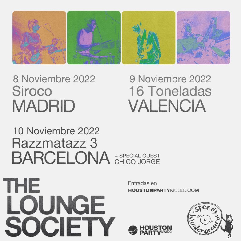Los británicos The Lounge Society ofrecerán esta semana los primeros conciertos de su carrera en nuestro país. Concretamente, su directo sonará en Madrid (el día 8, Siroco), Valencia (el 9, 16 Toneladas) y Barcelona (el 10, Razzmatazz 3).