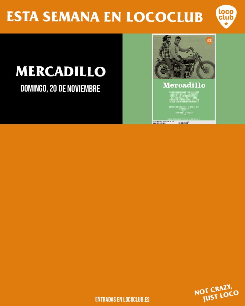 Desde las 11:00 h. hasta las 20:00 h., Loco Club se convertirá en un mercadillo con ropa vintage, discos, libros, cuadros y un larguísimo etcétera; amenizado con dj’s y buena comida.