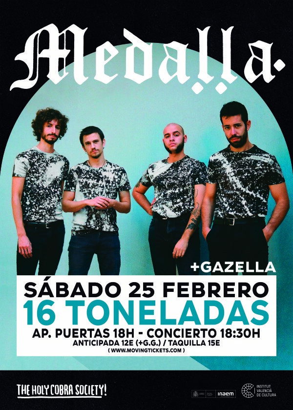 El sábado 25 de febrero, los barceloneses Medalla visitarán la sala 16 Toneladas en Valencia, acompañados por los locales Gazella. Medalla se encuentran actualmente grabando su cuarto disco, y han publicado recientemente el doble single «Doce Espadas / Esperpento (Directo)».