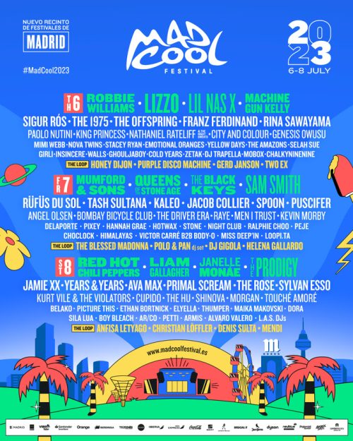 De esta forma, el cartel definitivo de Mad Cool Festival 2023 se compone de 101 bandas, con nombres tan relevantes como The Black Keys, Red Hot Chili Peppers, Lizzo, Queens of the Stone Age, Sam Smith, The 1975, Nova Twins, Robbie Williams, Lil Nas X, Franz Ferdinand, Tash Sultana, Paolo Nutini, Rina Sawayama, Jamie XX, Machine Gun Kelly, … entre otrxs.
