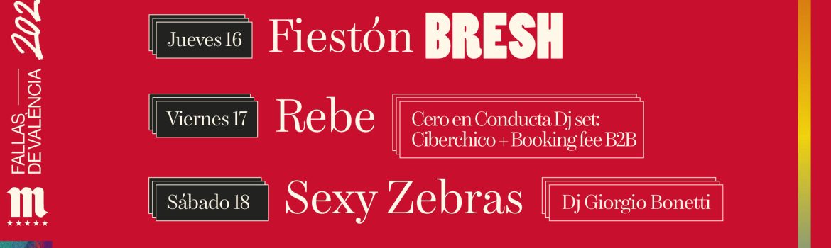 Una de las peculiaridades que hace tan especiales a las Bresh Party es que durante sus fiestas convergen ritmos musicales de hoy y de ayer, haciendo bailar a todos los asistentes con los mejores hits de los 80, 90 y 2000 hasta la actualidad. Caramelos de bienvenida, un “glitter bar” y más sorpresas por desvelar prometen hacer vivir una experiencia única durante las Fallas.