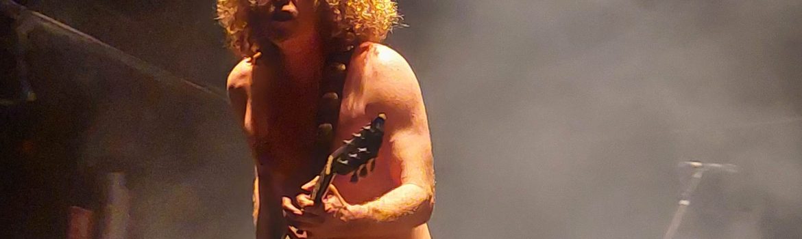 Con Repvblicca rebosante y rigurosa puntualidad, Wolfmother irrumpieron en el escenario en formato de trío invocando el espíritu de bandas como Led Zeppelin, Black Sabbath o ACDC en su propio terreno. La banda australiana presentaba su álbum “Rock Out”, publicado en 2021, y nuevo single “Stay a Little Longer”(2023), pero sin lugar a duda su disco homónimo del 2006 fue uno de los grandes protagonistas en el setlist. Y así, el show comenzó con la rotundidad sonora de los primeros acordes de “Dimension” y una voz, la de Andrew Stockdale, con sabor al hard rock de los 70’. “Rock Out” apareció con un poderoso y pegadizo riff de guitarra, y enseguida se coló uno de los grandes clásicos de la banda “Woman”, con todo el auditorio dispuesto a corear y mover la cabeza al ritmo de un auténtico hit, despojado de unos teclados que no se echaron en falta ante semejante avalancha eléctrica.