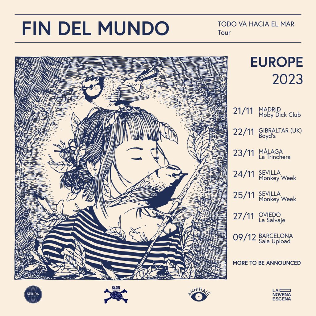 Ahora Fin del Mundo, una de las bandas más prometedoras de la escena argentina contemporánea, están cada vez más cerca de aterrizar en nuestro país. Y lo harán por partida doble: por un lado, gracias a su reciente fichaje con Spinda Records, el viernes 3 de noviembre nos llegará la edición española de «Todo va hacia el mar», estimulante trabajo discográfico; y por otro lado, las argentinas también saltarán el charco para presentar en directo dicho LP en una gira europea que les llevará, además de por Madrid, Sevilla, Málaga, Gibraltar, Oviedo y Barcelona, por otras ciudades de Francia, Suiza e Italia. Un tour organizado al alimón por Brain Productions, Annibale Booking y La Novena Escena.