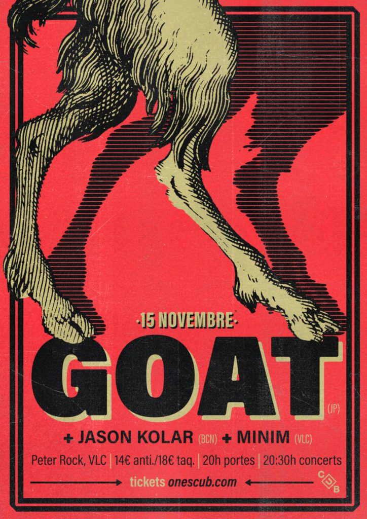 Después de su concierto de inauguración con Big Brave y Traidor,la asociación CUB entrega otro concierto completamente diferente con una propuesta imbatible: los japonenses Goat, Jason Kolar y Mínim actuarán el 15 de noviembre en la sala Peter Rock de Valencia.