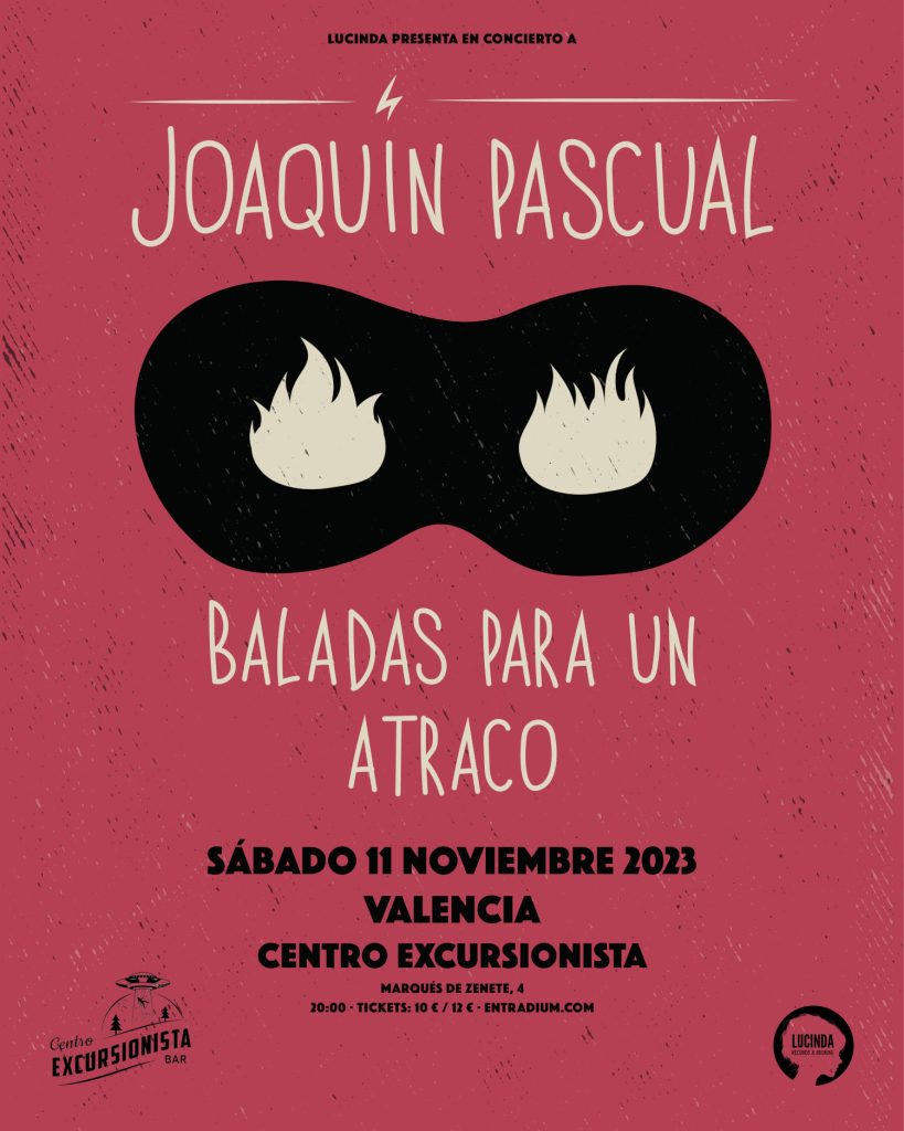 Joaquín Pascual presenta en directo su nuevo disco ‘Baladas para un Atraco’ en Valencia, el sábado 11 de noviembre en el Centro Excursionista.