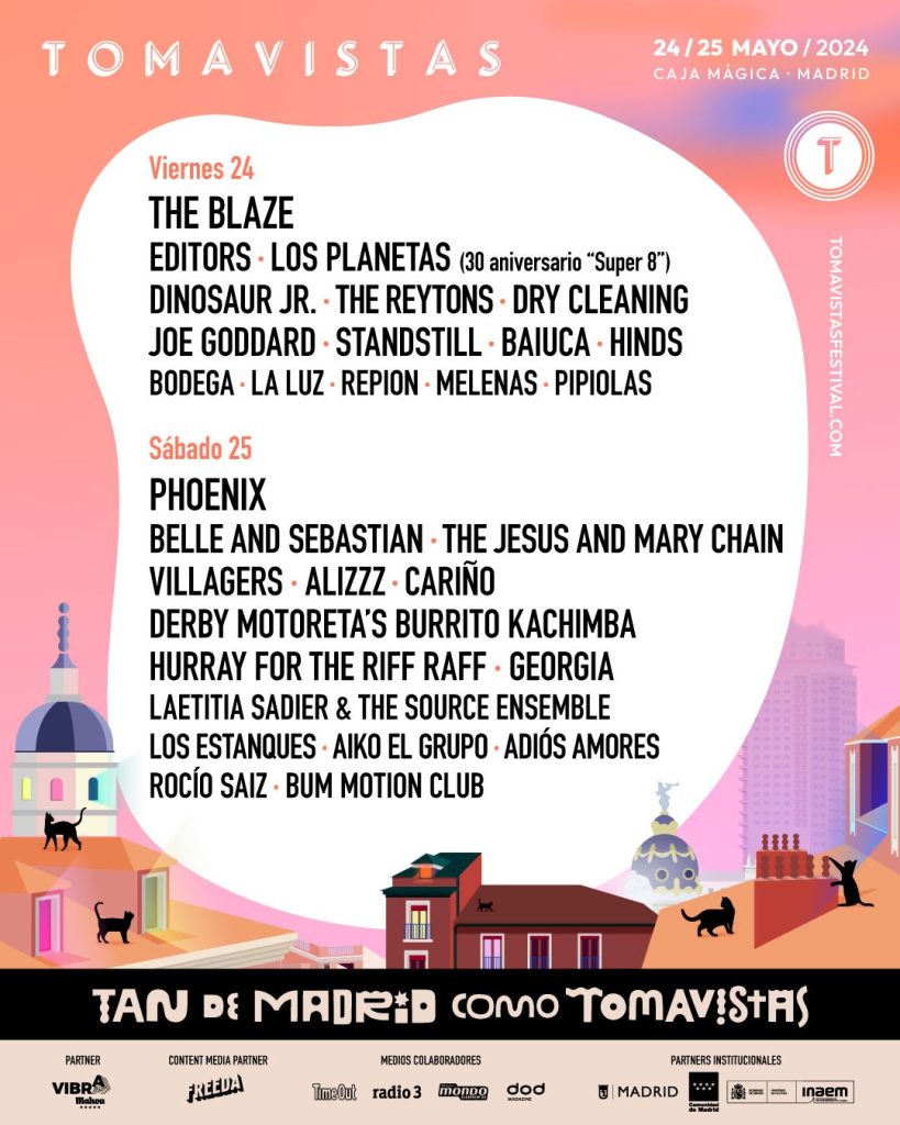 Tomavistas cuenta un año más con el apoyo de Vibra Mahou —la plataforma de música de Mahou Cinco Estrellas que impulsa encuentros en torno al directo—, y la Comunidad de Madrid, que comparte con el festival ElMejorEstiloDeVidaDelMundo.