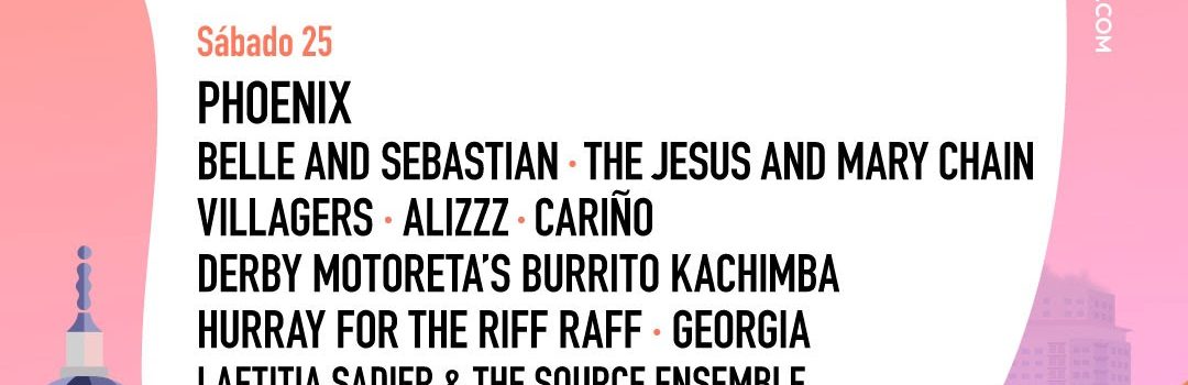 Y el sábado 25 podremos disfrutar de Phoenix, Belle and Sebastian, The Jesus and Mary Chain, Villagers, Alizzz, Cariño, Derby Motoreta’s Burrito Kachimba, Hurray for the Riff Raff, Georgia, Laetitia Sadier & The Source Ensemble, Los Estanques, Aiko El Grupo, Adiós Amores, Rocío Saiz y Bum Motion Club.