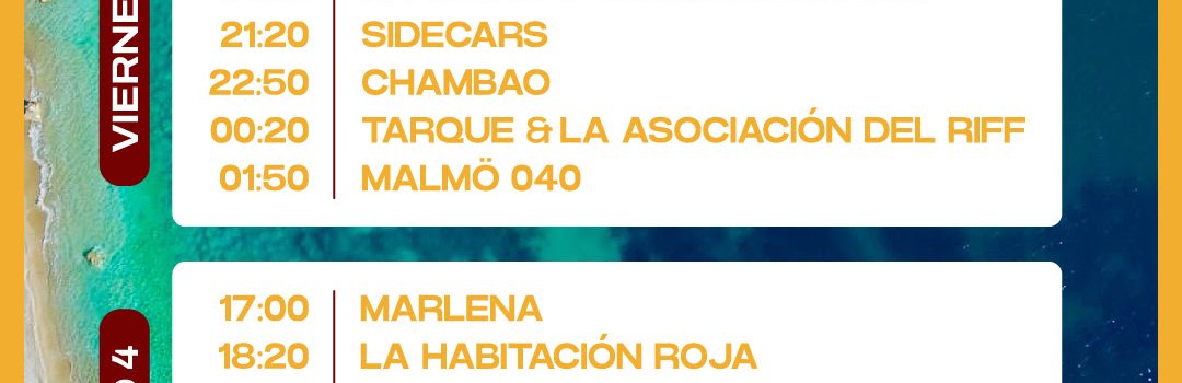 Un cartel de lujo con grandes artistas del panorama indie-rock nacional como son COQUE MALLA, SIDECARS, TARQUE, LOS ZIGARROS, CHAMBAO, CIUDAD JARA, PIGNOISE, LA HABITACIÓN ROJA, SANTERO Y LOS MUCHACHOS, POL 3:14, MALMÖ 040, BESMAYA, BADLANDS y MARLENA, harán que la localidad de Xàbia sea la protagonista musical.