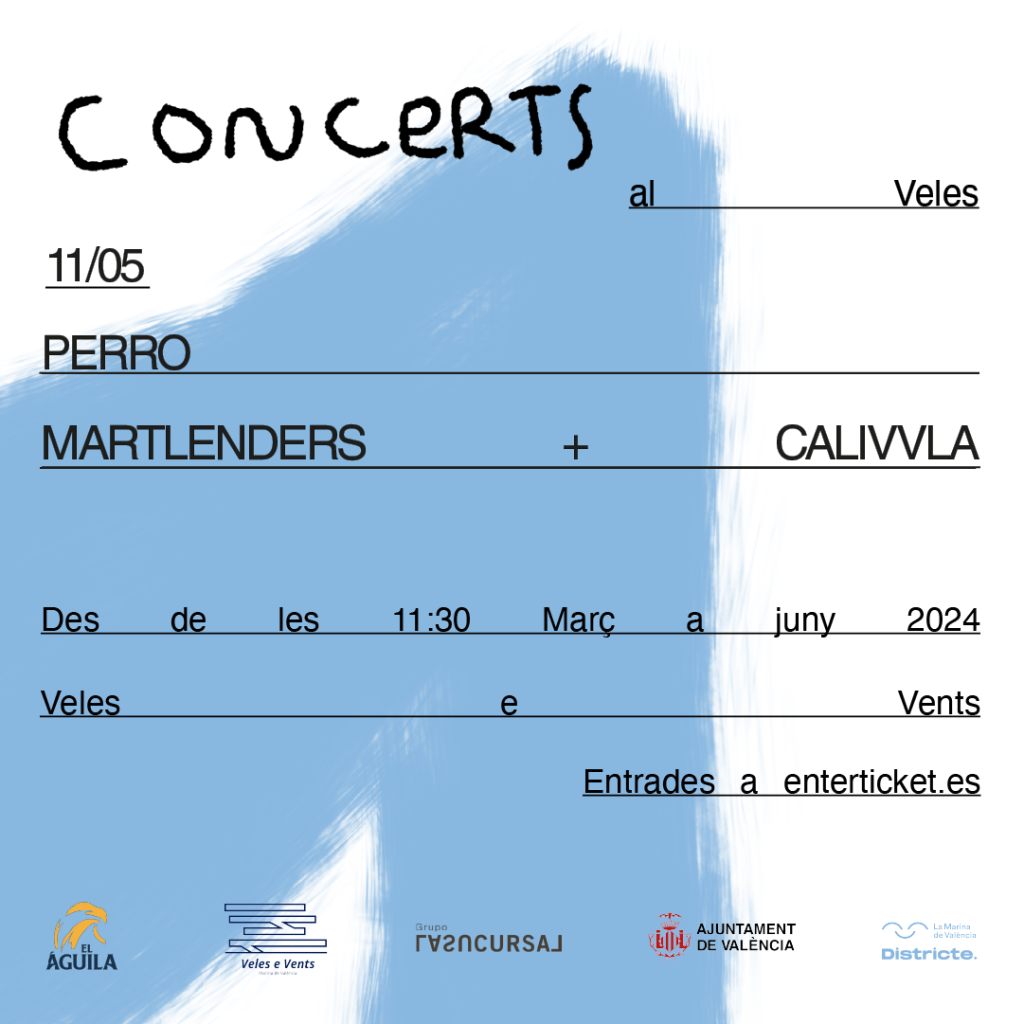 El ciclo de conciertos Concerts al Veles ya ha pasado su ecuador, siendo el próximo sábado 11 de mayo la sexta fecha de esta primera temporada, con los conciertos de Perro, Calivvla y Martlenders en la fiesta de Discos Oldies, el centro neurálgico de la música en la ciudad. Una primera temporada que consolida de nuevo La Marina de València como el punto de encuentro musical de los sábados por la mañana.