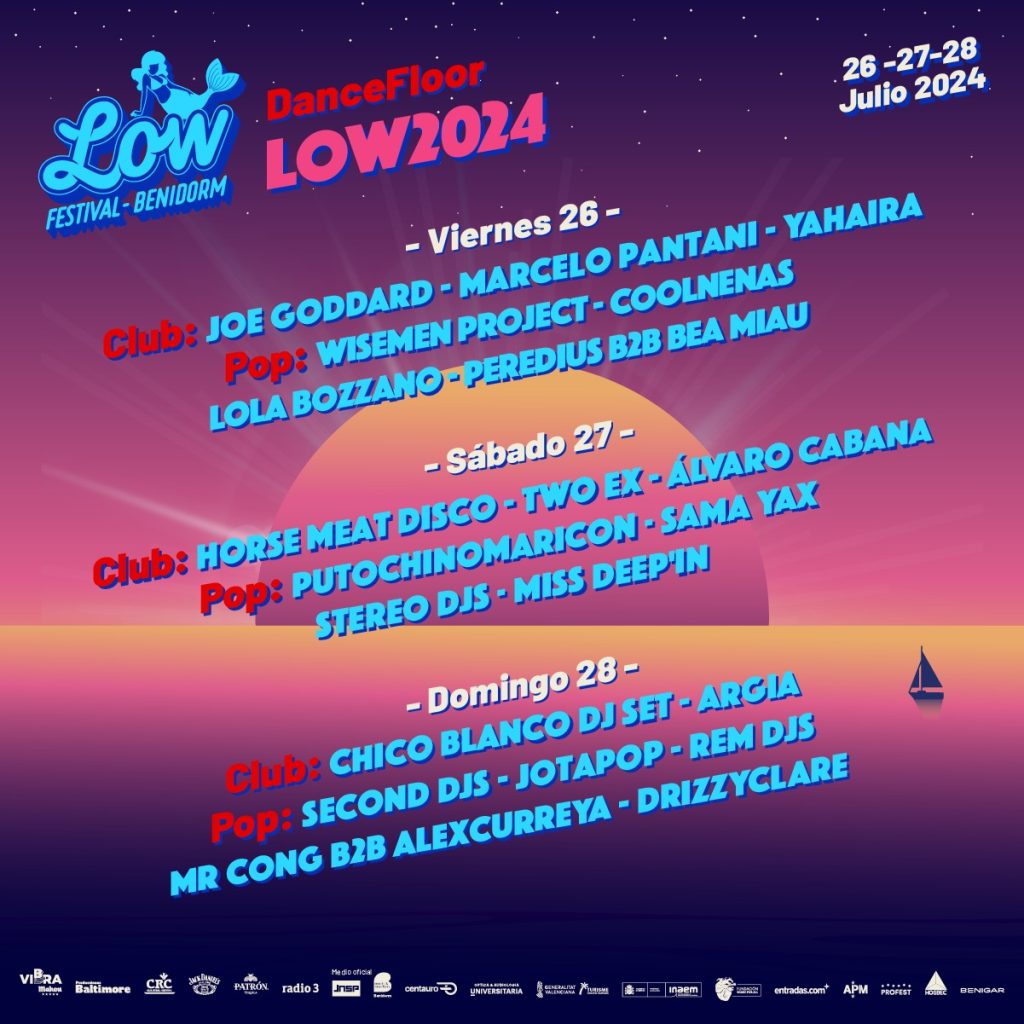 Una veintena de nombres cierran hoy el cartel de #Low2024, todos ellos enfocados a la pista de baile. Putochinomaricón DJ set, Yahaira, Wisemen Project o Chico Blanco DJ Set, entre otros, cierran el cartel de una edición que quedará para el recuerdo entre los mejores sets de las escenas indie-pop y de club. Estos nombres se unen a los ya anunciados entre los que destacan: Pixies, Amaral, Maxïmo Park, Suede, Mikel Izal, Arde Bogotá o Los Planetas -celebrando los 30 años de Super 8– entre otros muchos.