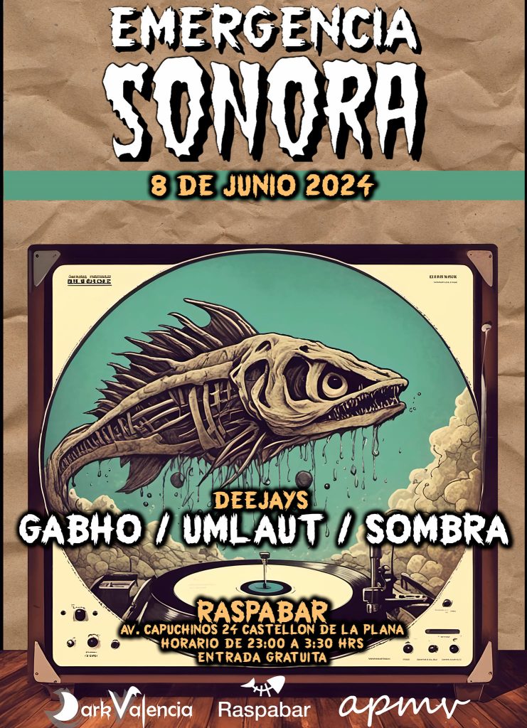El próximo día 8 de junio, presentación del festival Emergencia Sonora en Raspabar (Av. Capuchinos, 24) de Castellón con los DJs Gabho, Umlaut y Sombra.