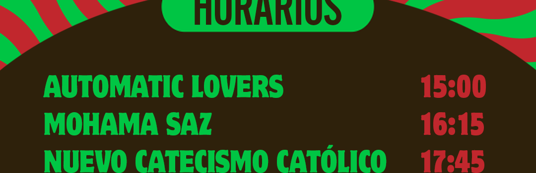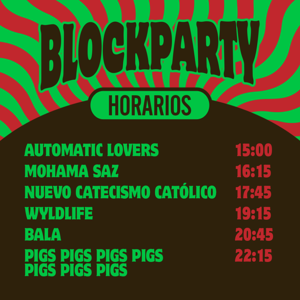 Como viene siendo tradición, el festival vuelve a apostar por sonidos contundentes y guitarras afiladas. Ahora anuncian horarios y también que Albert Petit y Cosmetic Couple serán los DJs encargados de activar el festival, uniéndose a las bandas ya confirmadas Automatic Lovers, Mohama Saz, Nuevo Catecismo Católico, Wyldlife, Bala y Pigs Pigs Pigs Pigs Pigs Pigs Pigs.