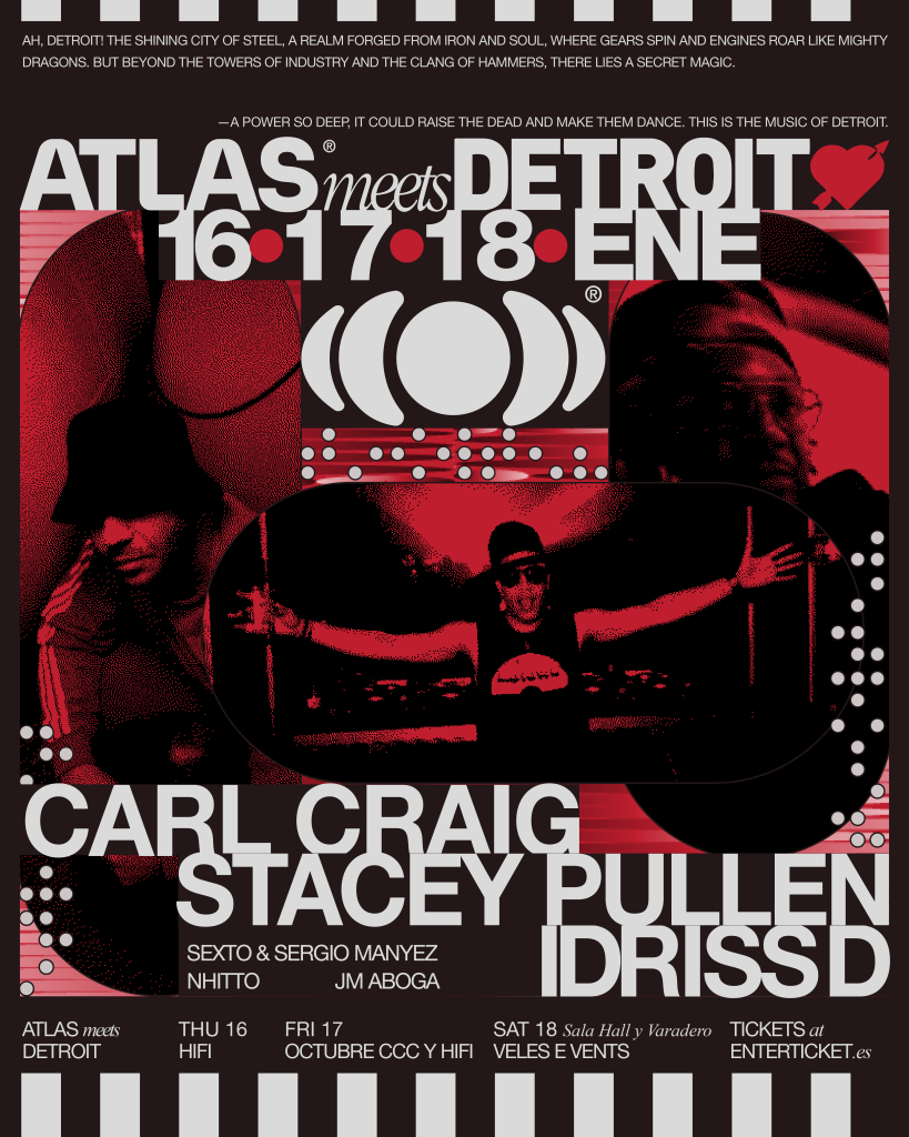 El próximo 18 de enero en la planta baja del edificio Veles e Vents, Atlas abrirá su primera edición en València, con una programación dedicada a Detroit, la ciudad que dio origen al techno y marcó un antes y un después en la historia de la música electrónica. El evento contará con la participación de artistas de renombre internacional provenientes de Detroit, quienes ofrecerán ponencias sobre la evolución y el impacto global de la música electrónica, así como DJ sets que transportarán al público al corazón de esta emblemática escena musical. El jueves 16 se celebrará la presentación oficial en Hi Fi y el viernes 17 de enero se harán sesiones de escucha en Hi Fi y en Octubre Centro de Cultura Contemporánea, y