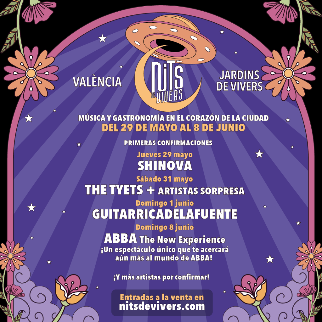 Shinova (29 de mayo), The Tyets (31 de mayo), Guitarricadelafuente (1 de junio) y el espectáculo ABBA The New Experience (8 de junio) son los nombres que comienzan a dar forma a un cartel que sumará más artistas en las próximas semanas. Las entradas ya están disponibles en Nits de Vivers.