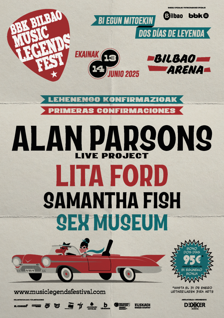 El BBK Bilbao Music Legends Fest, patrocinado por BBK y el Ayuntamiento de Bilbao, y organizado por Dekker Events, ha puesto ya a la venta los primeros bonos con una promoción de lanzamiento de 95 € + gastos hasta el 31 de enero (inclusive).