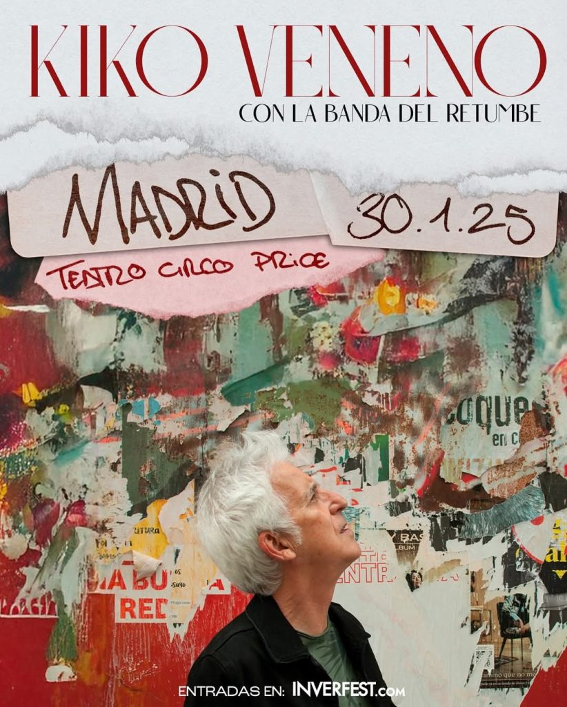 El próximo 30 de enero, Kiko Veneno actuará en el Teatro Circo Price de Madrid dentro de la programación del Inverfest. Cantecitos nuevos y viejos, del Hambre al Veneno en un ratito de gloria. Kiko Veneno llega con su banda, pletórica, engrasada y a punto, para traer temas de estreno y clásicos, cachitos de yerro y cromo, y brevitas con hielo. Una noche para encontrar candela y volar.