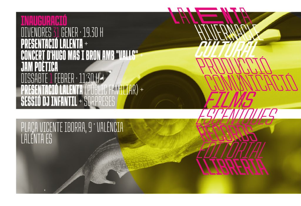 Este viernes 31 de enero y sábado 1 de febrero, Lalenta celebra su inauguración oficial en el corazón del Barri del Carme, en la Plaça Vicente Iborra, 9. Lalenta es mucho más que un espacio físico: es un invernadero cultural. Un concepto que nace de su doble función como productora cultural, que cuida y acompaña proyectos únicos, y como espacio cultural que acoge una programación centrada en propuestas transformadoras, de proximidad y con un compromiso claro con la cultura viva.