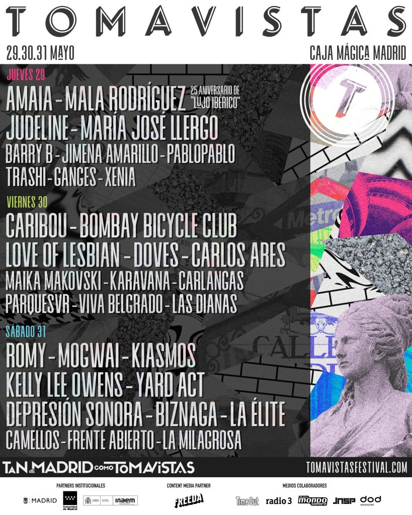 Ya tenemos el cartel completo de Tomavistas 2025. Romy, Doves, Kelly Lee Owens, Yard Act, Frente Abierto y Xenia cierran la programación del festival para los días 29, 30 y 31 de mayo en la Caja Mágica de Madrid.
