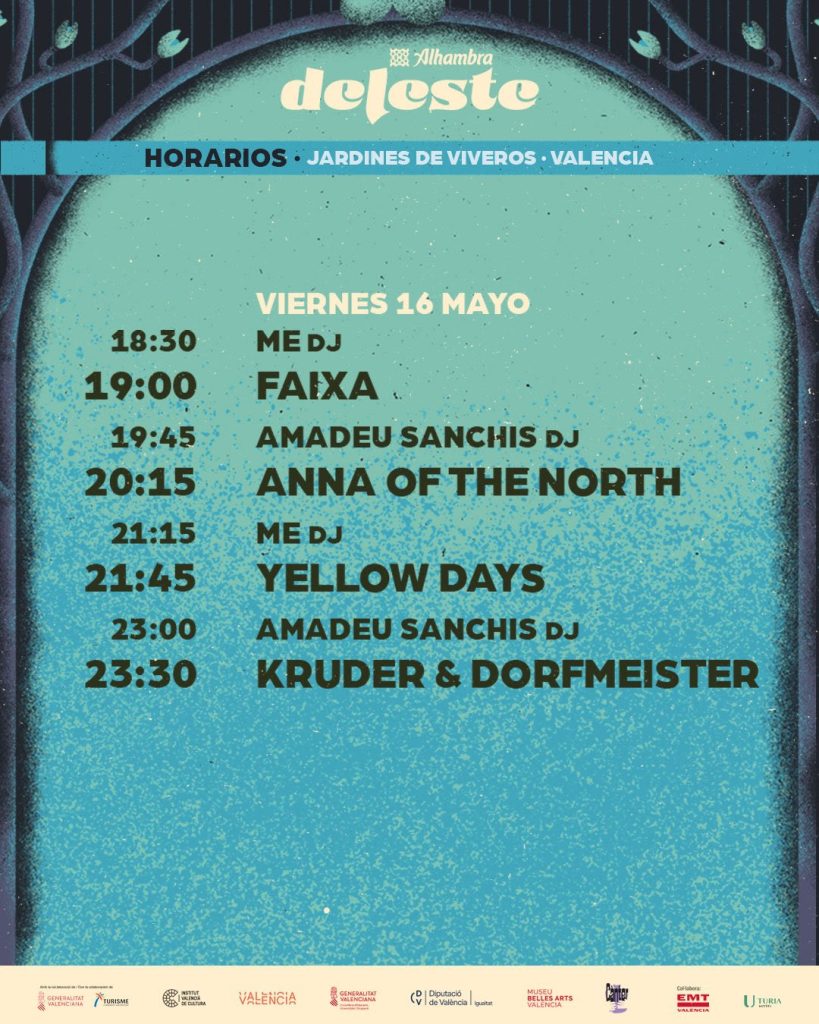 Ya conocemos cómo se repartirá el arcoíris de sonidos que llenará de vida los Jardines de Viveros en esta esperadísima edición del Deleste Festival. Desde hoy ya están disponibles los horarios de la programación, para que el público pueda planificar su experiencia al detalle y no perderse ni una nota. Artistas como Kruder & Dorfmeister, Yellow Days, Anna of the North, The Vaccines, Teenage Fanclub o Death In Vegas prometen fuertes emociones, pero Deleste Festival es #mesqueunfestival y así lo demostró el pasado 3 de mayo.