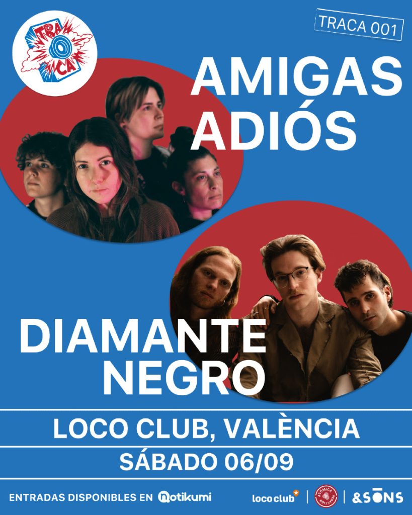 El sábado 6 de septiembre, dentro del ciclo TRACA, actuarán Amigas Adiós y Diamante Negro en Loco Club.