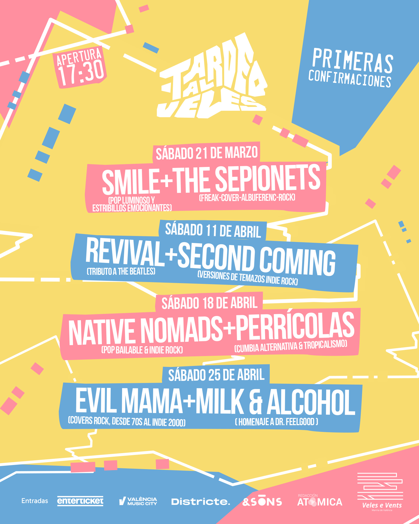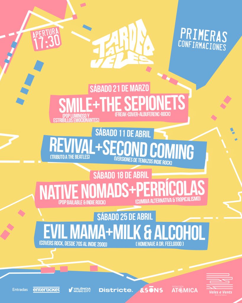 Tras el pistoletazo de salida, y respetando el descanso por las festividades de Fallas y Semana Santa, el ciclo retomará su pulso habitual. El 21 de marzo, el pop luminoso de los vizcaínos Smile se cruzará con el «freak-cover-albuferenc-rock» de The Sepionets (homenajeando con letras en valenciano a ABBA, Lady Gaga, Elvis Presley, Queen, Duo Baccara, Plastic Bertrand, Jeannette), mientras que el 28 de marzo será el turno de la potencia de Dragón (Black Crowes, Amy, The Cult, Michael Jackson, Wild Cherry, U2, Britney Spears, Millie Cyrus, Alanis, RATM, Foo Fighters) y rematará la velada la inmejorable selección de temazos servida por Splendini DJ.