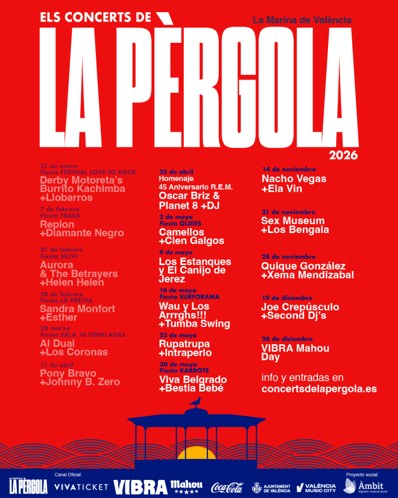 Els Concerts de La Pèrgola, el ciclo musical que ha recuperado este espacio emblemático de La Marina de València como punto de encuentro cultural e integrador en Els Poblats Marítims, anuncia su programación para los meses de otoño con una nueva serie de conciertos que refuerzan esa identidad: una propuesta abierta, diversa y conectada con distintas escenas del panorama nacional.